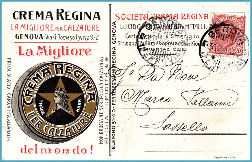 Bella cartolina pubblicitaria, viaggiata in data 30 ottobre 1913 con destinazione Sassello