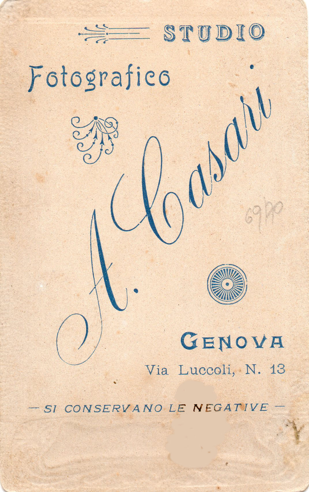 A. Casari Studio fotografico con lo studio in via Luccoli, al n°13
