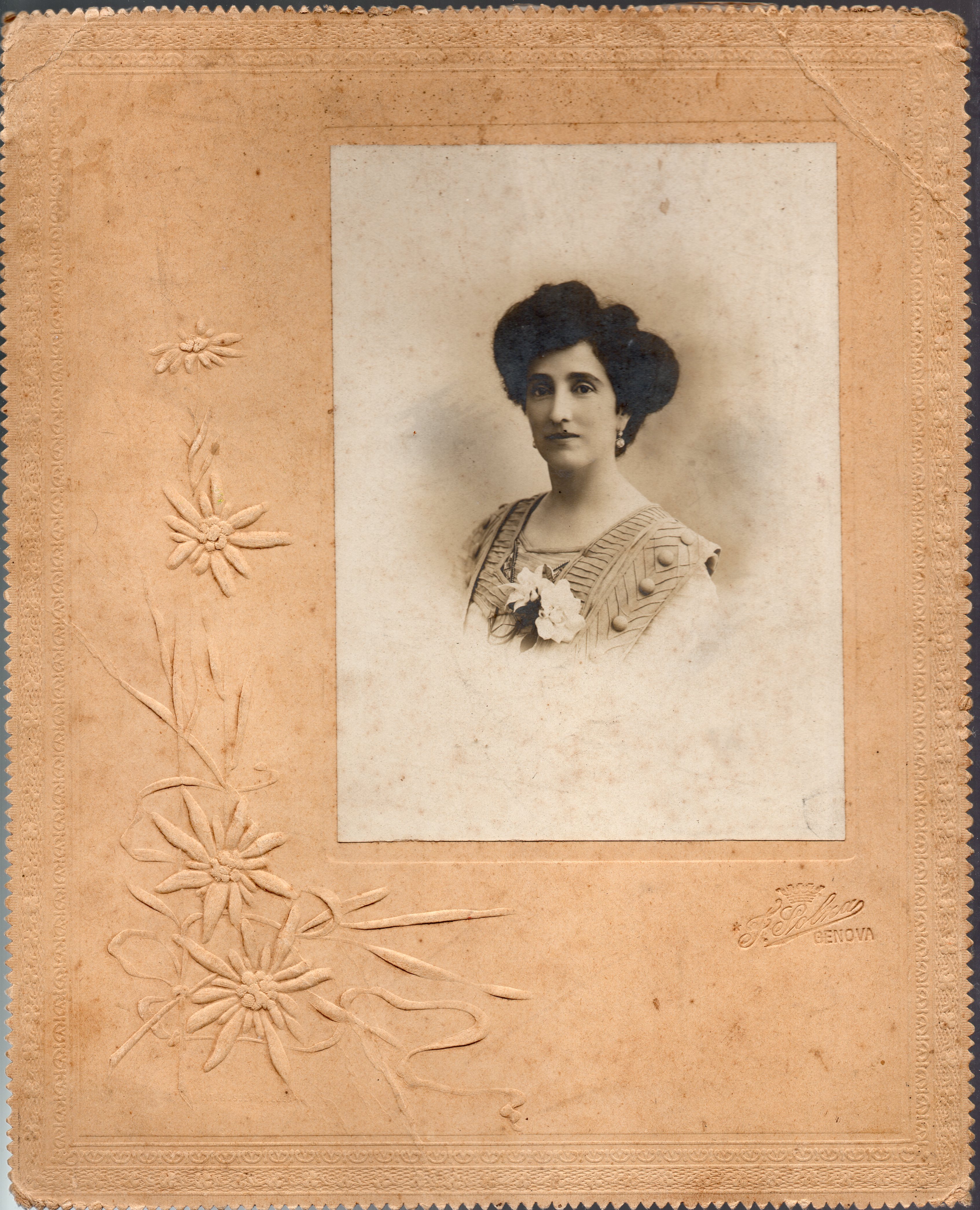 La foto è ricoperta da una sottile carta velina trasparente.