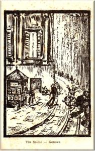 Nella cartolina è rappresentata via Sellai in Genova.