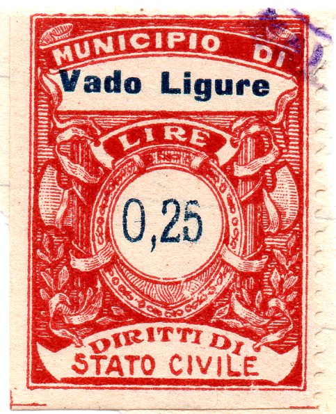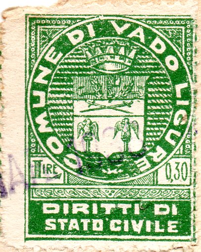 Sulla marca non vi è nessun riferimento al comune di Vado Ligure, ma è stata staccata da un certificato emesso da questo comune, in data 1 gennaio 1948.