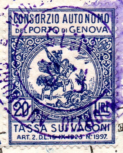Marca per tassa sui vagoni, in uso presso il Consorzio Autonomo del Porto di Genova.