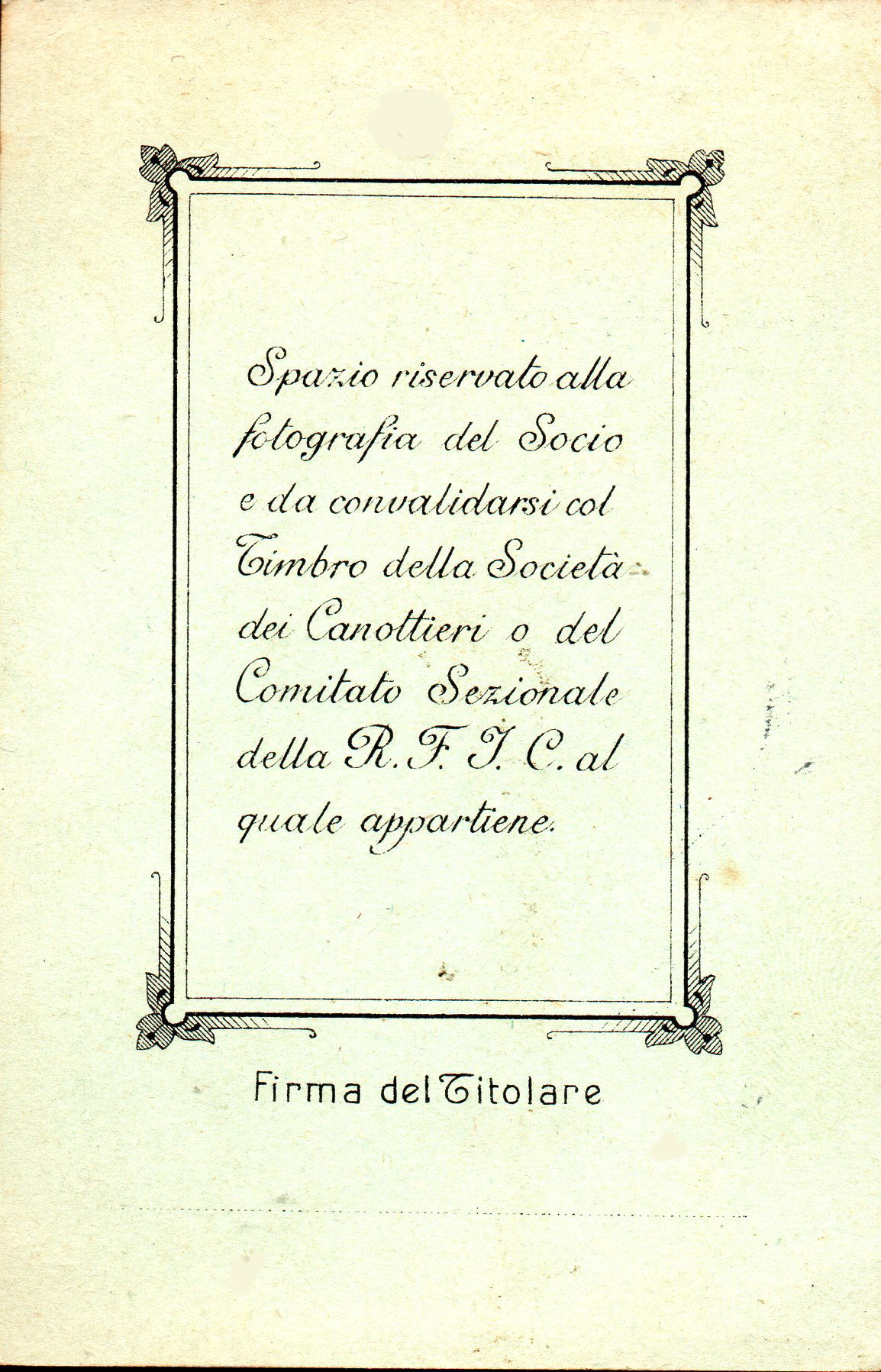 Tessera della R. FEDERAZIONE ITALIANA DI CANOTTAGGIO