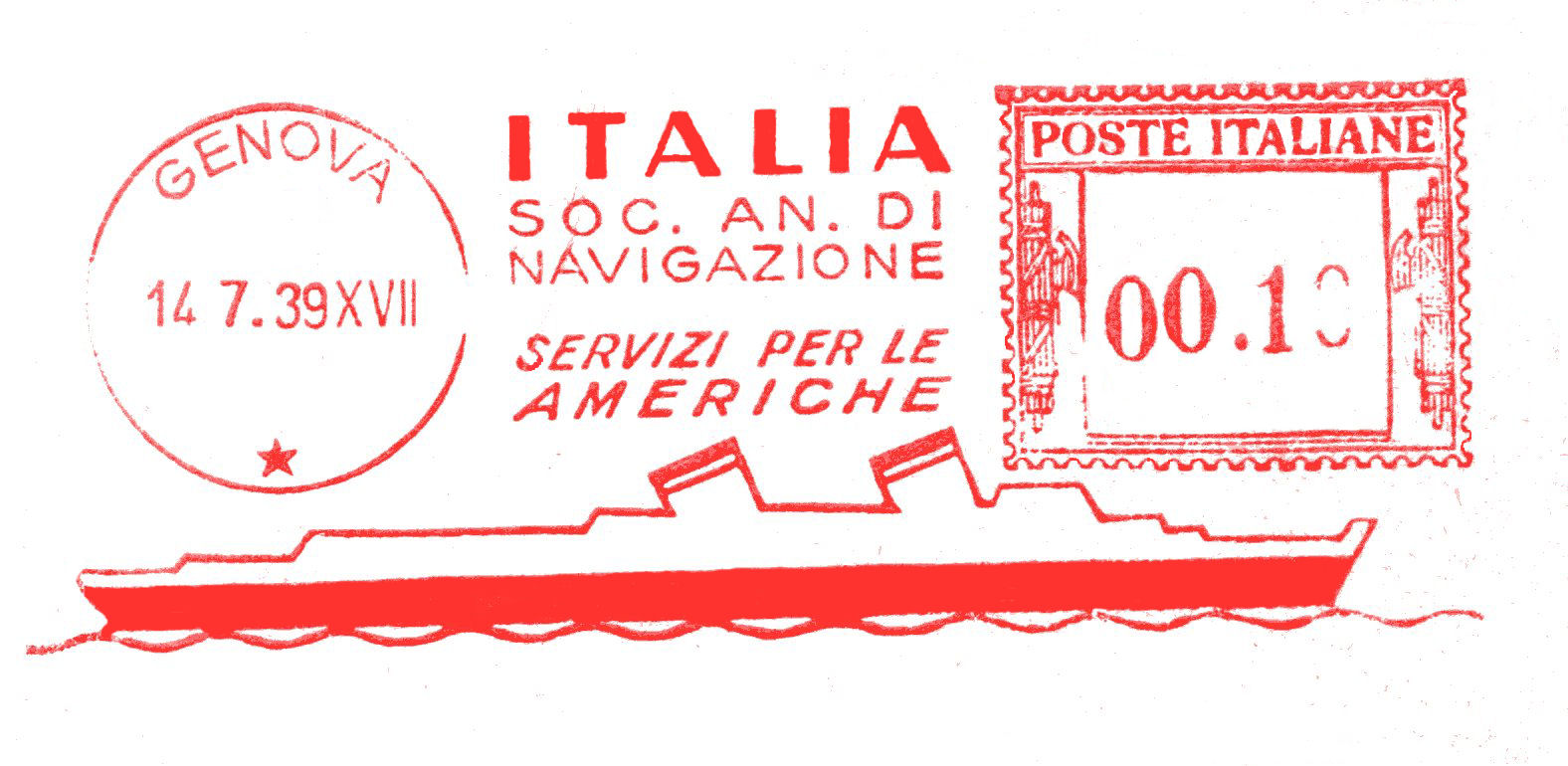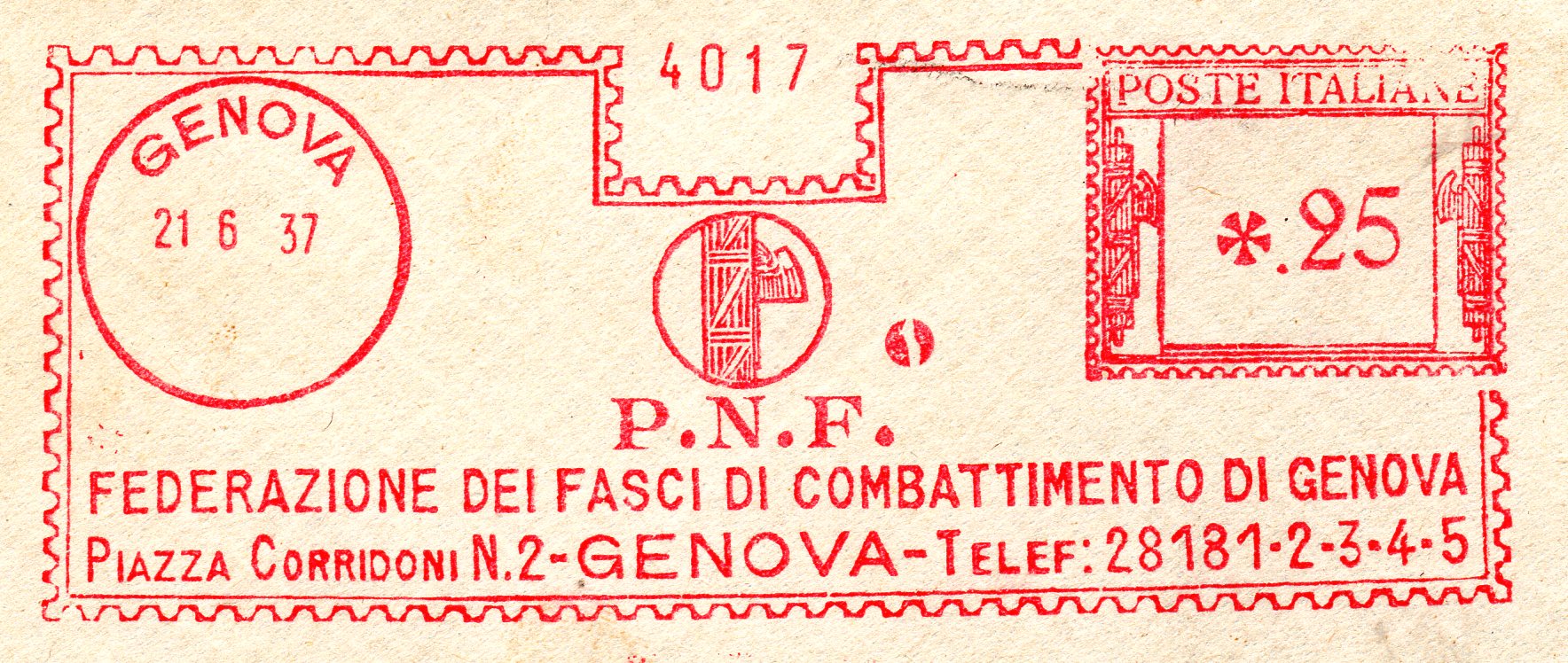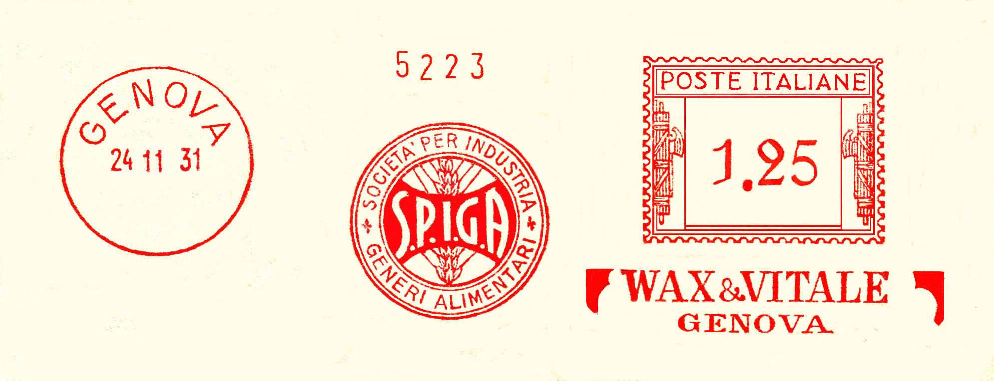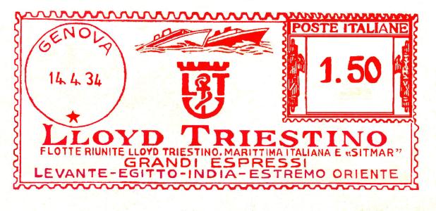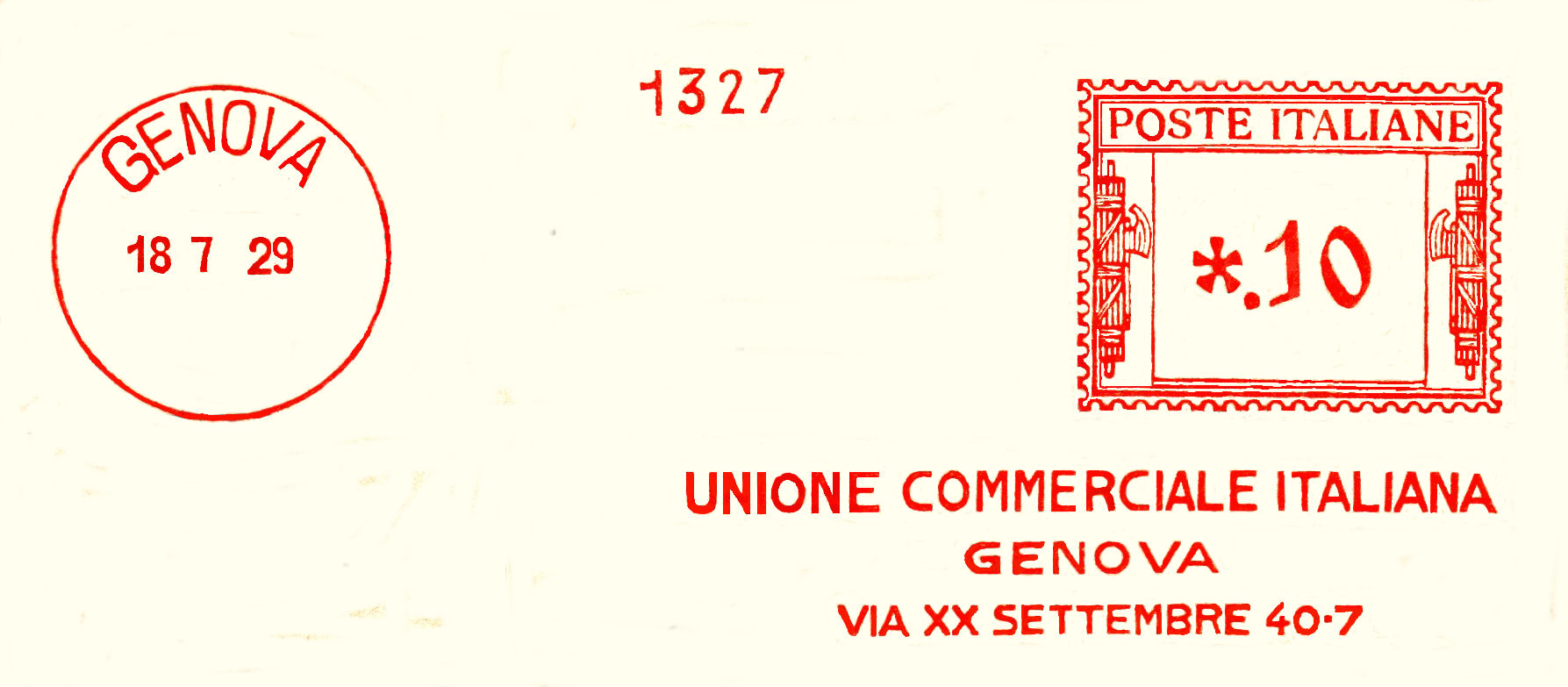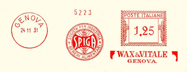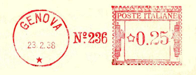 La lettera con questa bella impronta ha viaggiato da Genova per la Francia in data 24 novembre 1931 con tariffa lire 1 e 25 cent.