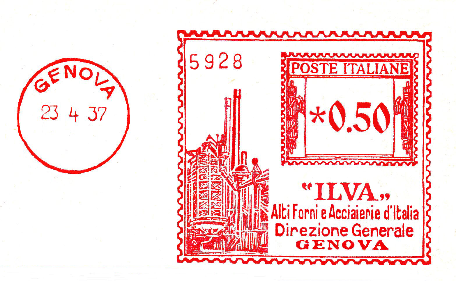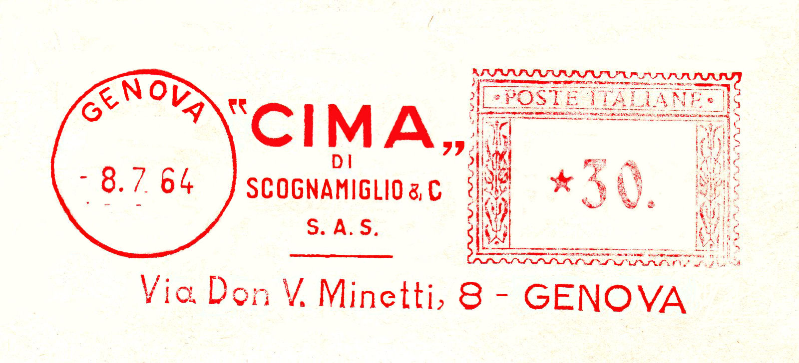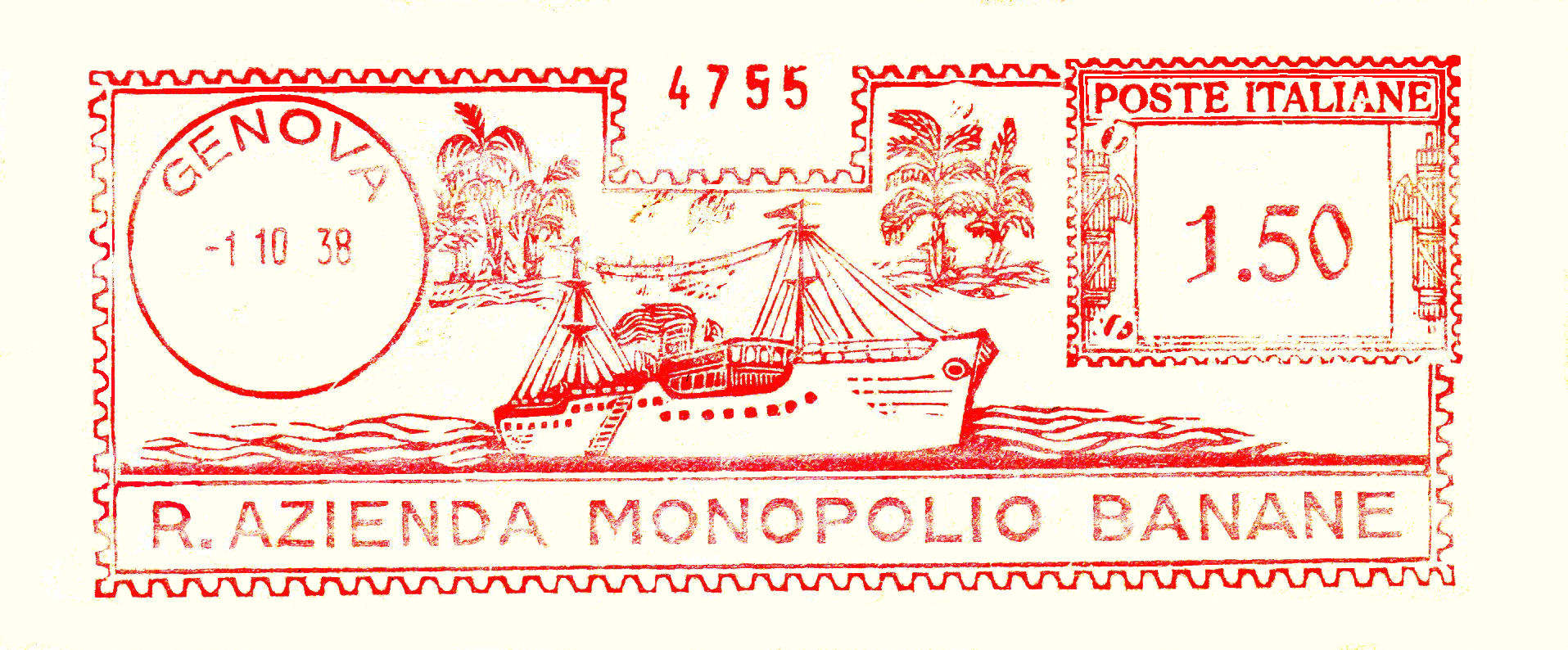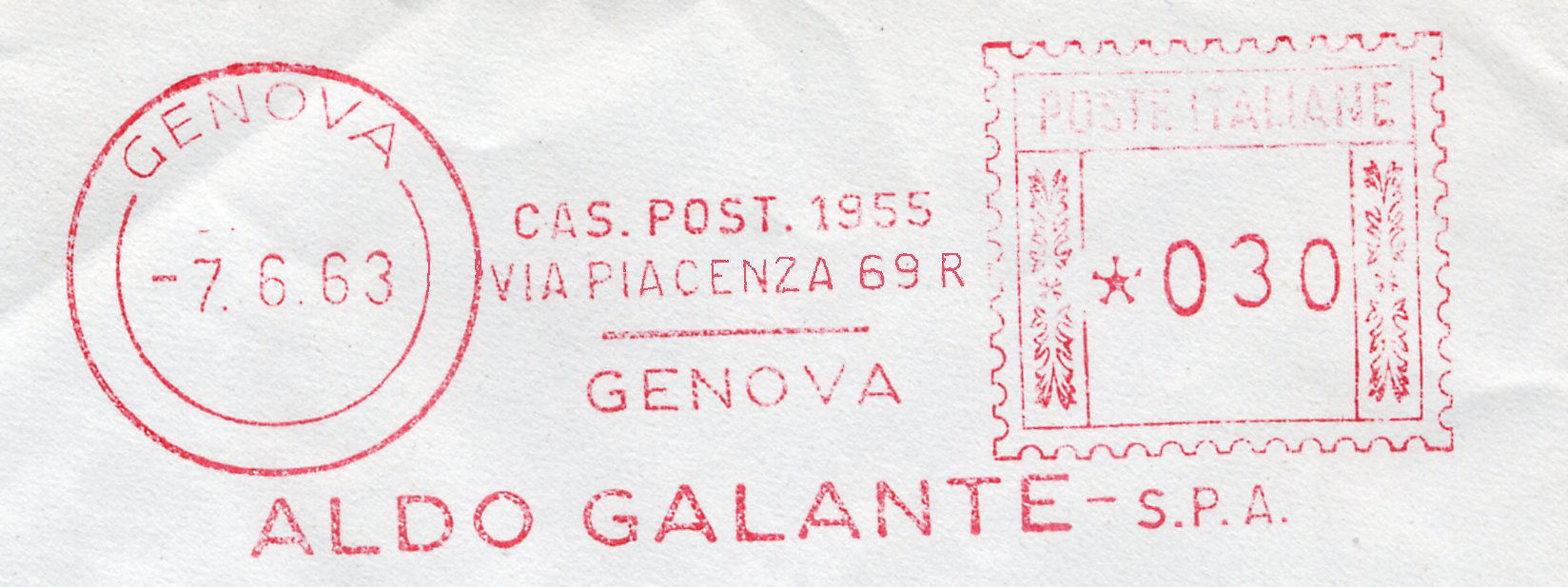 La lettera con questa bella impronta ha viaggiato da Genova per la Francia in data 24 novembre 1931 con tariffa lire 1 e 25 cent.