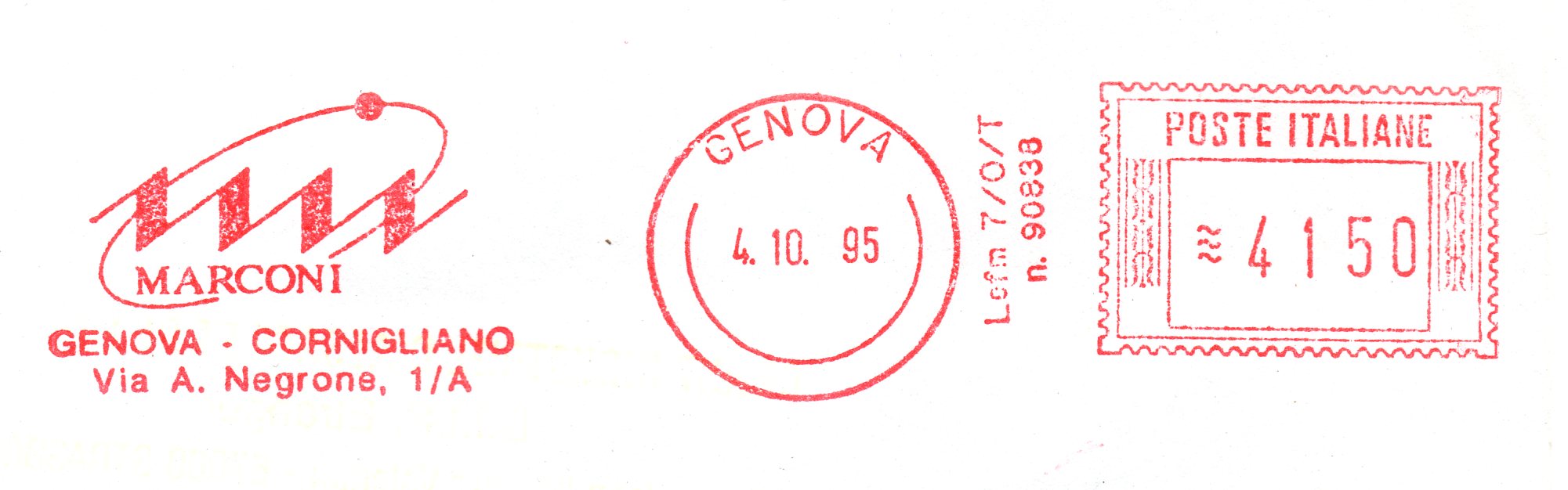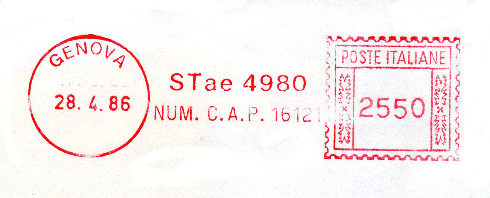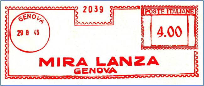 Affrancata con macchina tipo Lirma Mae 404 matr. 87444