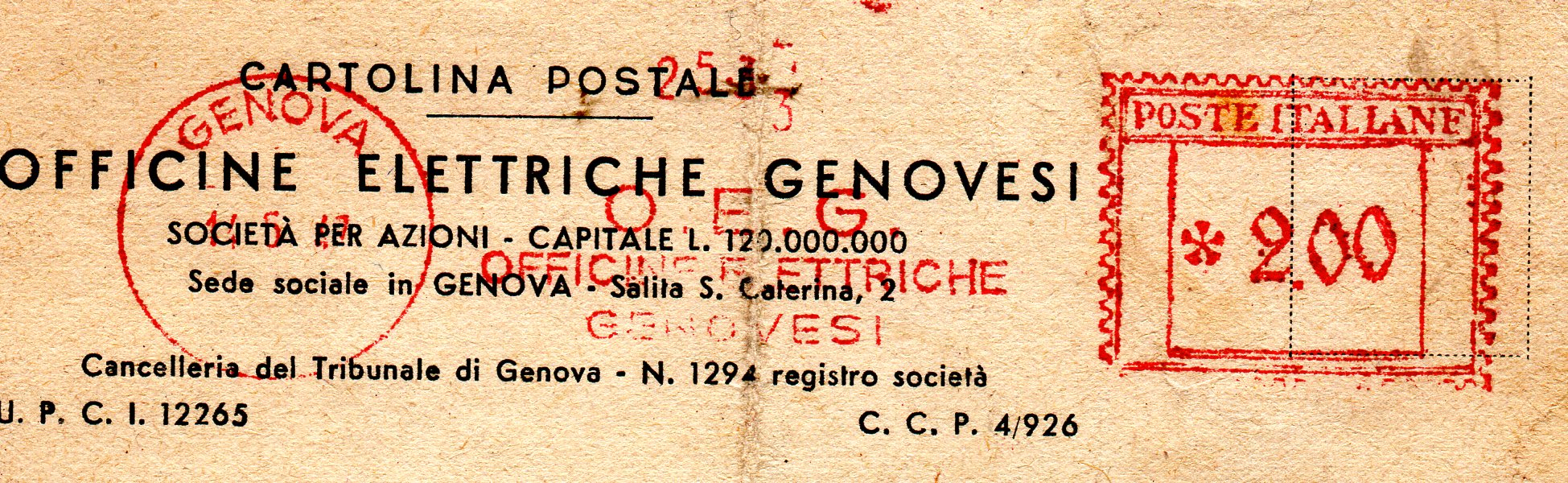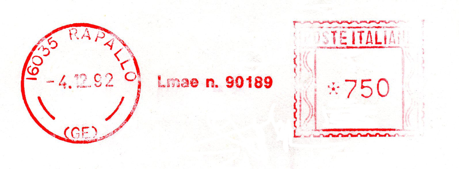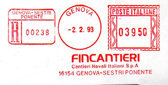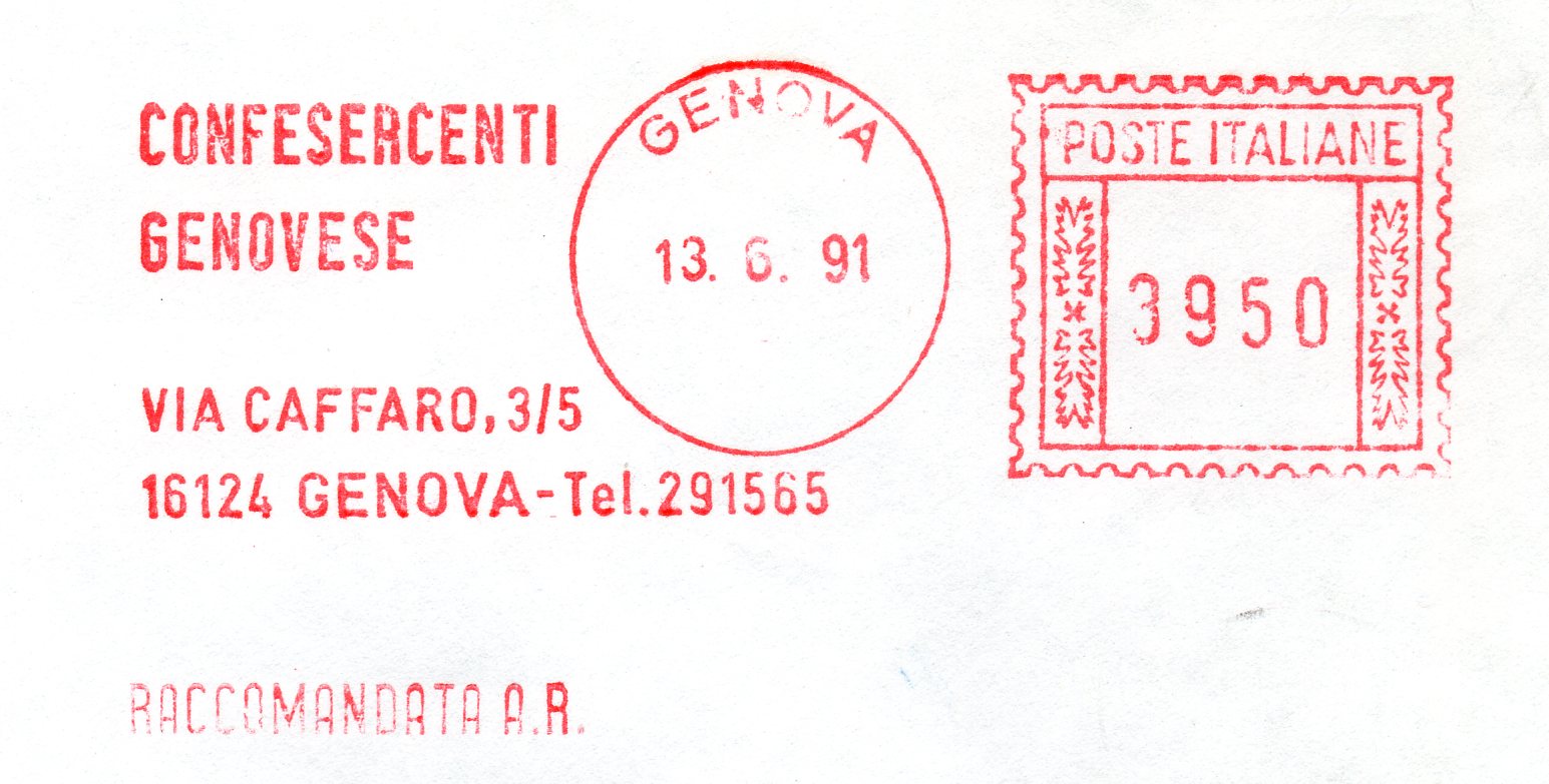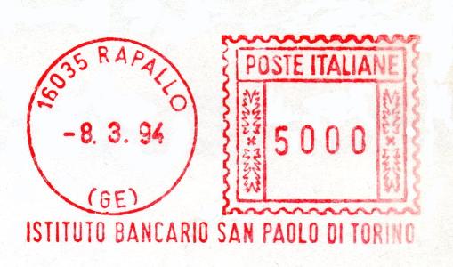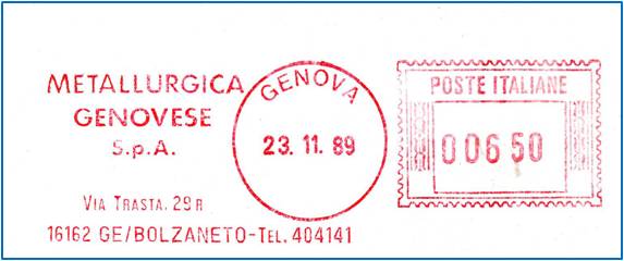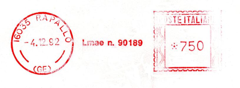 Affrancatura senza riferimento dell'utente, ma appartenente alla soc. RAPALLO GOLF CLUB.