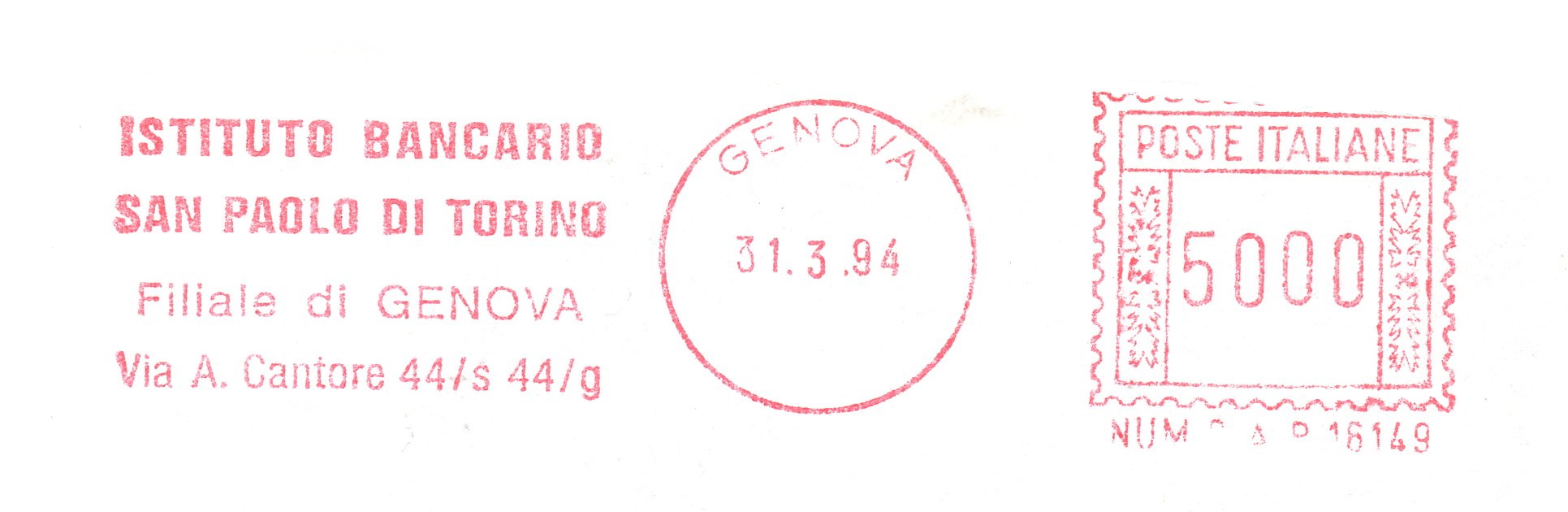 Filiale di Genova-Via San Benedetto, 14-Num.C.A.P. 16126
