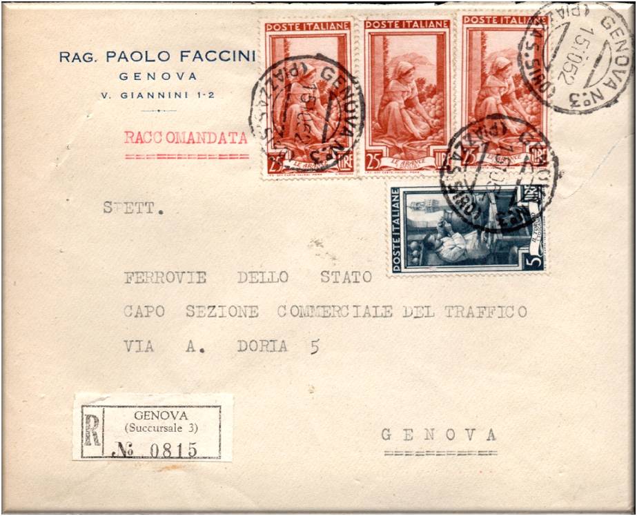 Annullati con il bollo GENOVA N.3 (PIAZZA S.SIRO) in data 15.10.1952