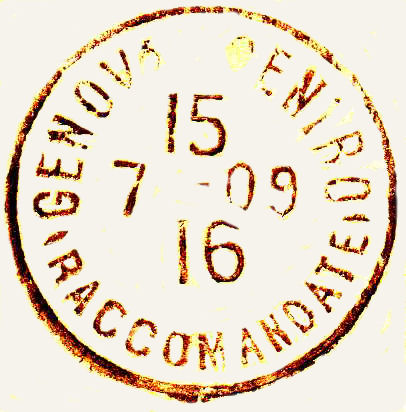 Lettera raccomandata in partenza da Genova per Roma in data 15 luglio 1909, affrancata con cent.40 anullato con il bollo GENOVA CENTRO (RACCOMANDATE) 15 7 09 ore 18