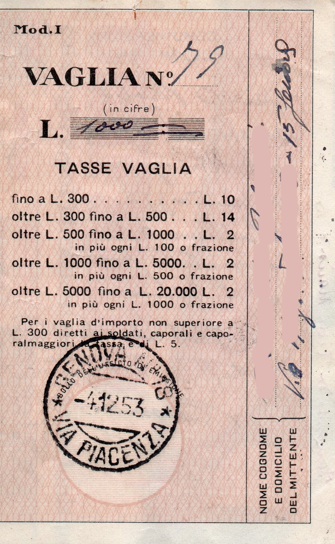 Genova Succ.18 VIA PIACENZA in data 4 dicembre 1953