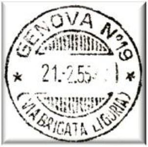 Annullato con il bollo GENOVA n°19 (VIA BRIGATA LIGURIA) in data 21 febbraio 1955.