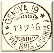 Destinazione Genova, Annullata con il bollo GENOVA 19 (VIA BRIG. LIGURIA) in data 16 febbraio 1946.