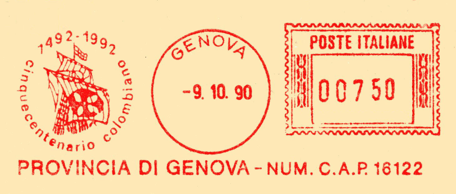 Questa impronta venne preparata per il cinquecentenario colombiano 1492-1992.