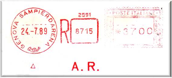 Si tratta della stessa macchina, matricola n°2509, con il datario modificato nella scritta, da "GENOVA CORRISPONDENZE" a "GENOVA C.P." in data 30-10-89
