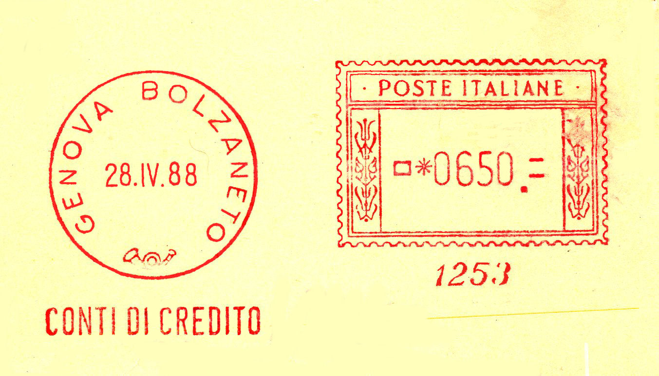 Questo tipo di macchine affrancavano le corrispondenze pagate cumulativamente a mezzo conti di credito ordinari (per corrispondenza in partenza), ed a volte venivano utilizzate per la convalida dei moduli (mod 32/O) resi all'utente all'atto del pagamento dei CdC speciali (per corrispondenze in arrivo), dove normalmente si usavano segnatasse, dal 1997 venivano spedite in conto di credito tutte le corrispondenze degli Enti statali che pagavano a forfait annualmente.
