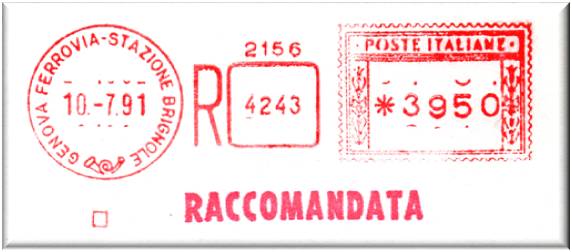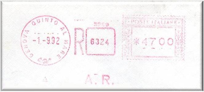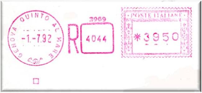 Si tratta della stessa macchina matricola n°274, con il datario modificato nella scritta, da "GENOVA CORRISPONDENZE" a "GENOVA C.P." in data 7-8-92