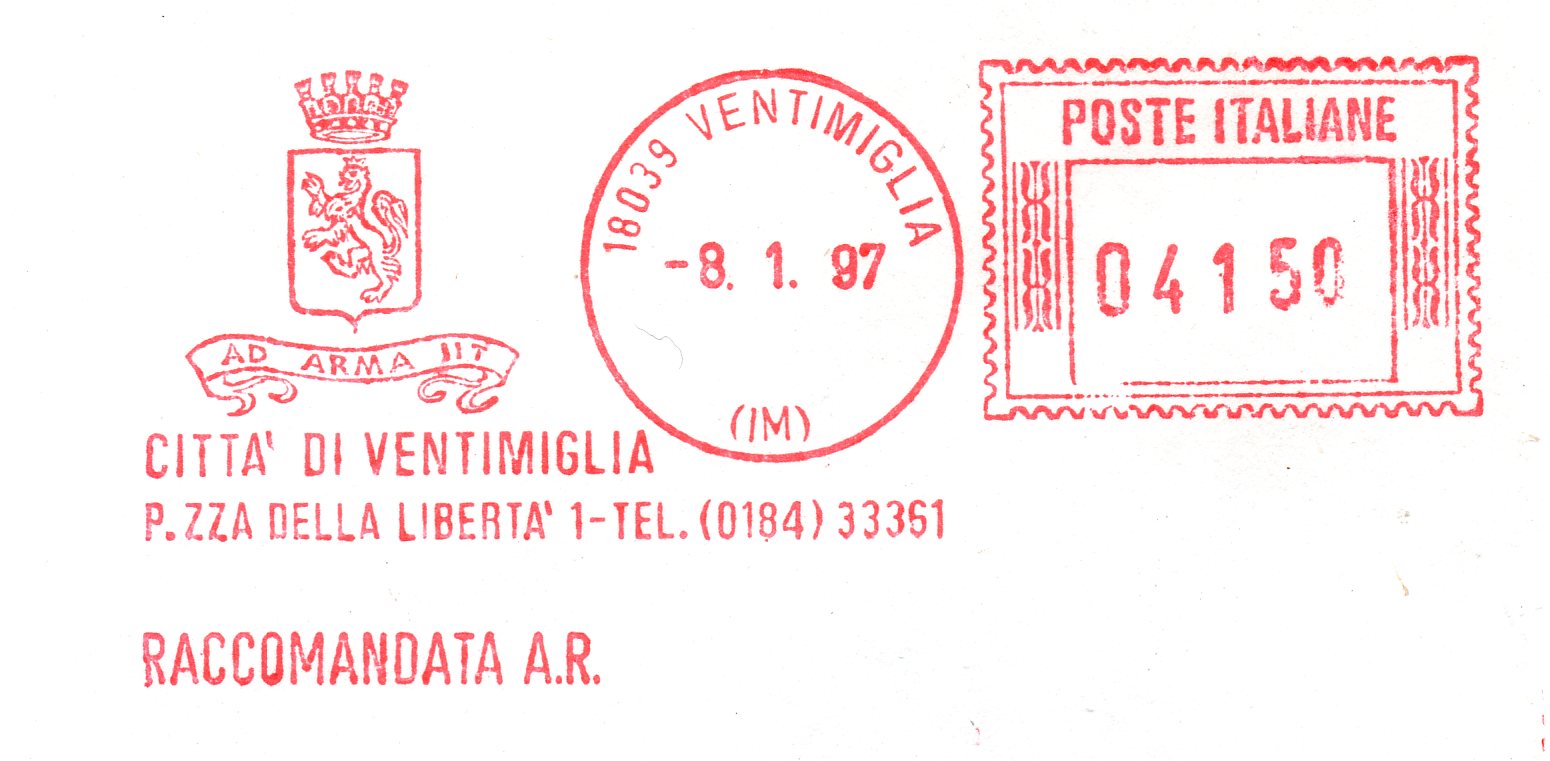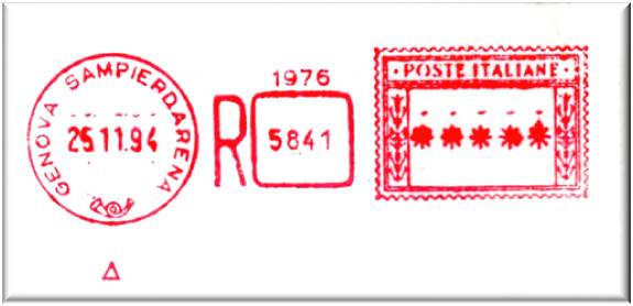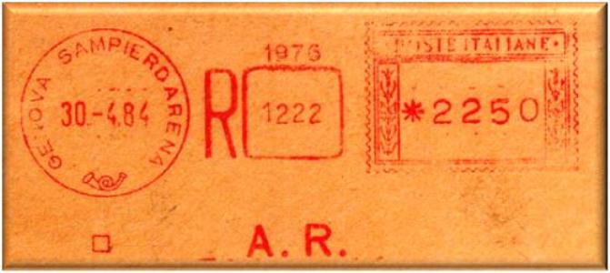 Matr. n°1976 il numero della raccomandata è stato cancellato con un tratto di penna, in quanto è entrato in vigore la numerazione del codice a barre nella targhetta adesiva, applicata sulla lettera.
