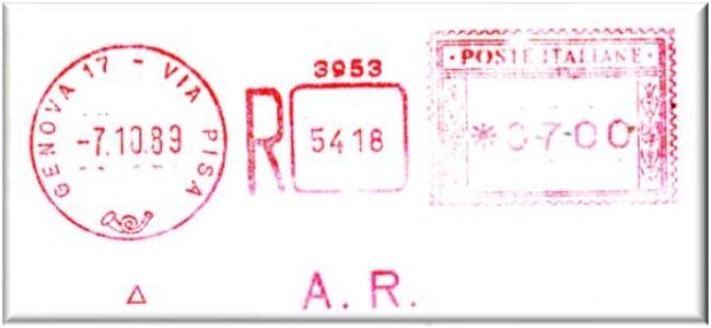 Matr. n°3953 raccom. A.R. n°5418