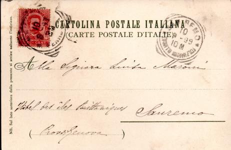 Cartolina artistica, viaggiata in data 10 agosto 1899