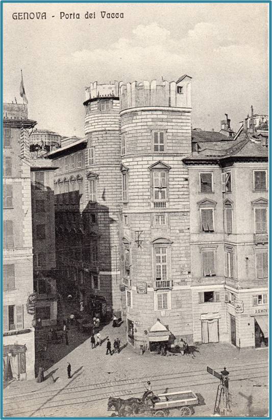 Questa porta fatta a modo di arco trionfale, è un bel monumento d'architettura. Nessuna città italiana , compresa Roma, può vantare porte antiche così belle, come questa e quella della Lanterna, ora dai vandali distrutta. Firenze sola, ne possiede una simile, detta Porta S. Gallo, che nella recente demolizione delle sue mura volle conservata, e la isolò, facendole passare ai due lati due grandi strade per le vetture.