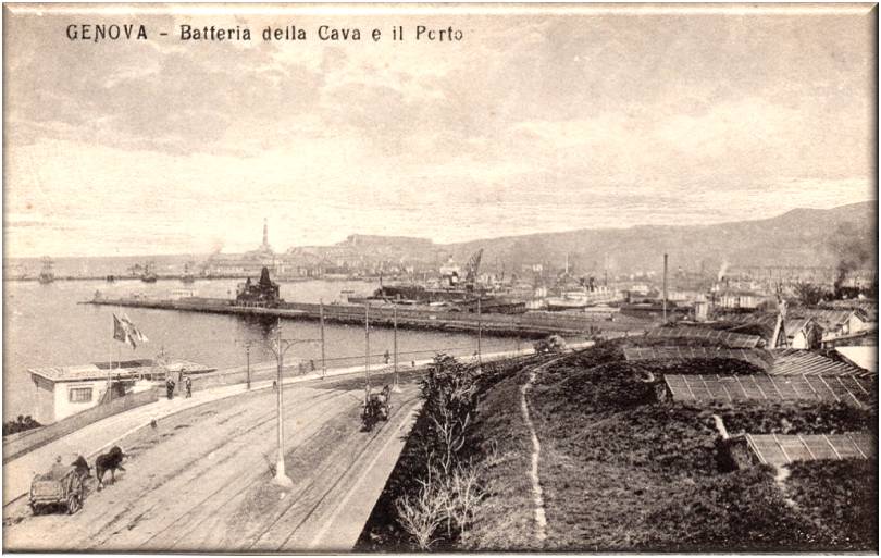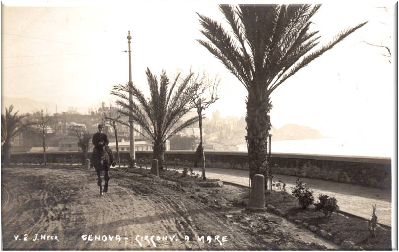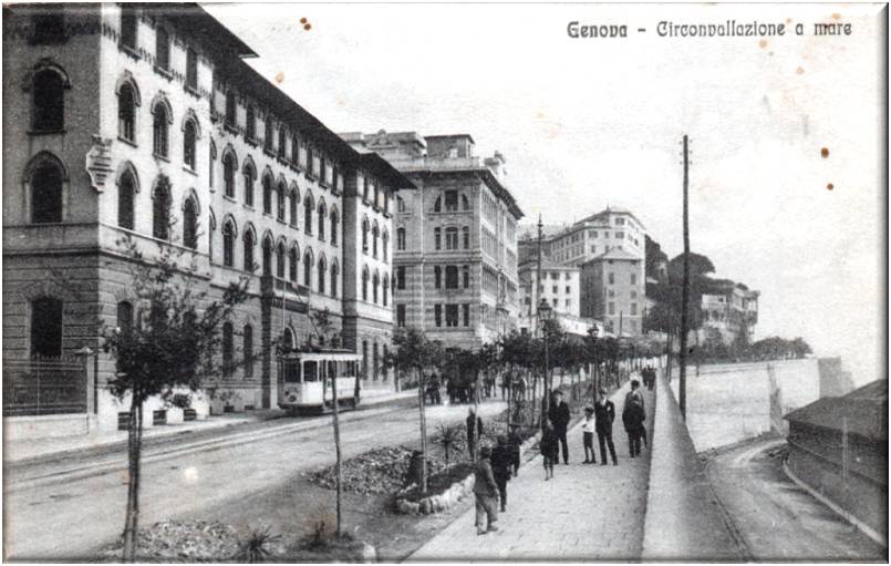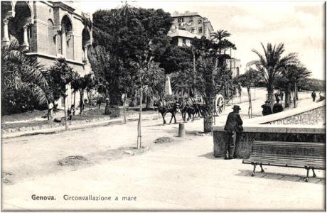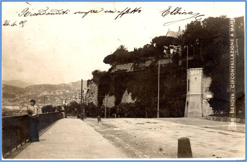 Immagine dei primi anni del 900 non è ancora ultimata la villa Milius poi Figari, e sono visibili i paracarri situati lungo il marciapiedi.