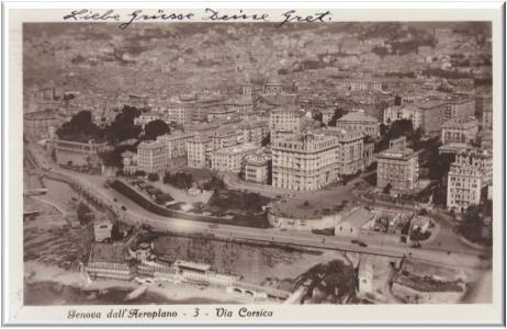 Cartolina viaggiata in data 22 agosto 1921 indirizzata in un anticolo vicolo di Genova "vico Pomogranata".