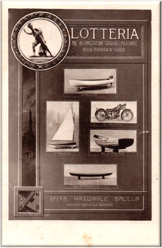 Lotteria a favore delle organizzazioni giovanili marinare della provincia di Genova, organizzata dal Comitato Provinciale Genovese.