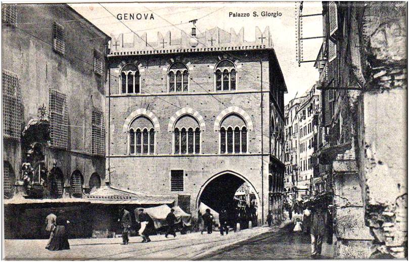Palazzo S.Giorgio. La costruzione gotica dello storico edificio risale al 1260, commissionato dal Capitano del Popolo Simone Boccanegra, l'opera si deve a frate Oliverio, cistercense dell'Abbazia di S.Andrea di Sestri già impegnato nel prolungamento del Molo vecchio.