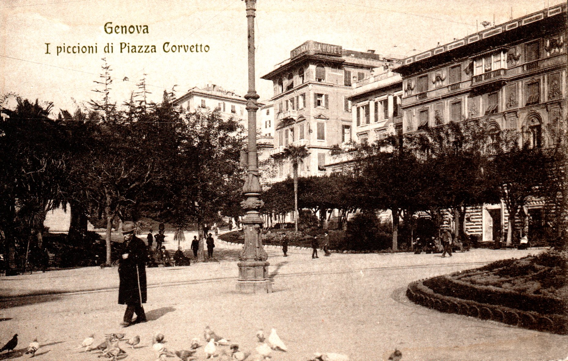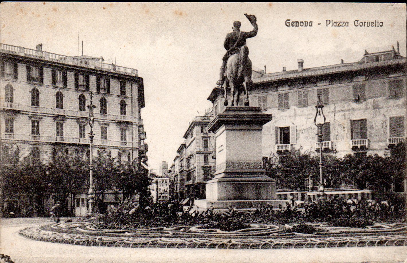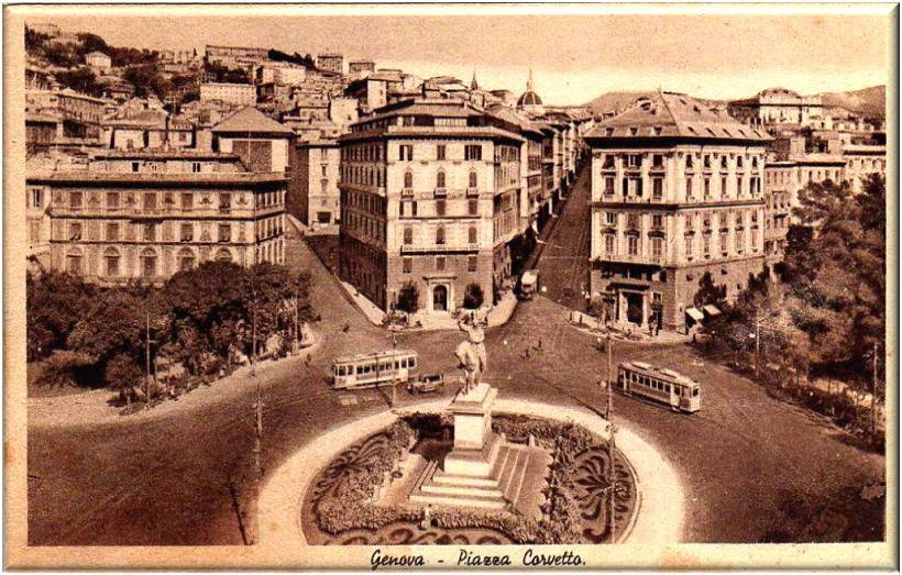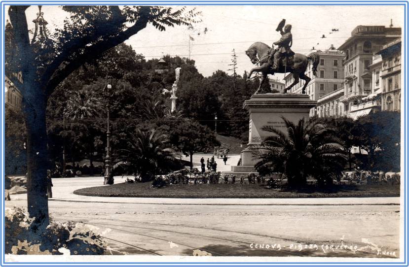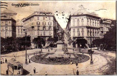 Cartolina fotografica viaggiata di Piazza Corvetto in data 15 aprile 1907