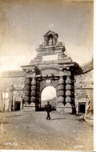 La cartolina rappresenta la porta nella sua collocazione originale.