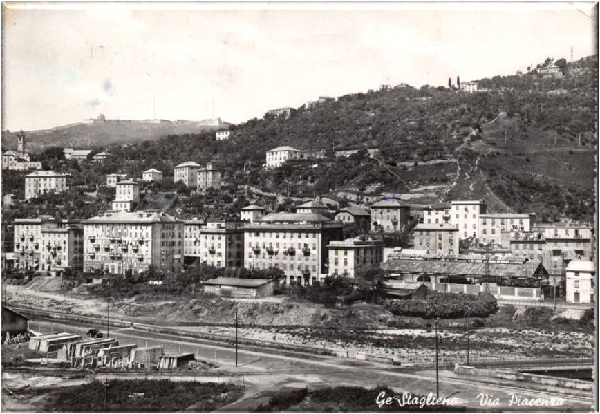 Cartolina viaggiata in data 30 gennaio 1953, della zona di Staglieno via Piacenza.