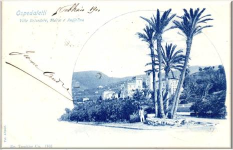 Cartolina viaggiata in data 5 febbraio 1900 da Ospedaletti a Genova, annullo Ventimiglia Genova n°2.