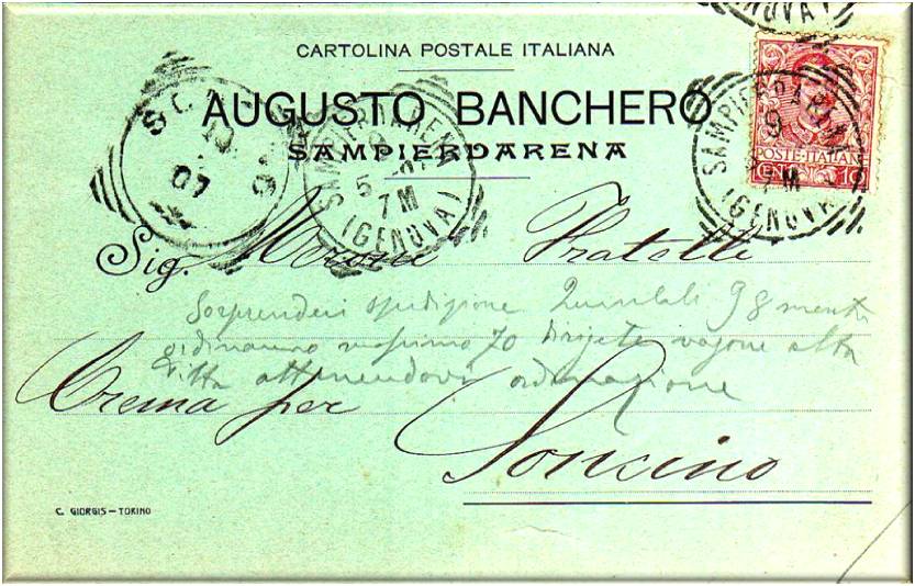 La ditta Mario Ravano aveva gli uffici in via F.Ferruccio 9 a Genova.