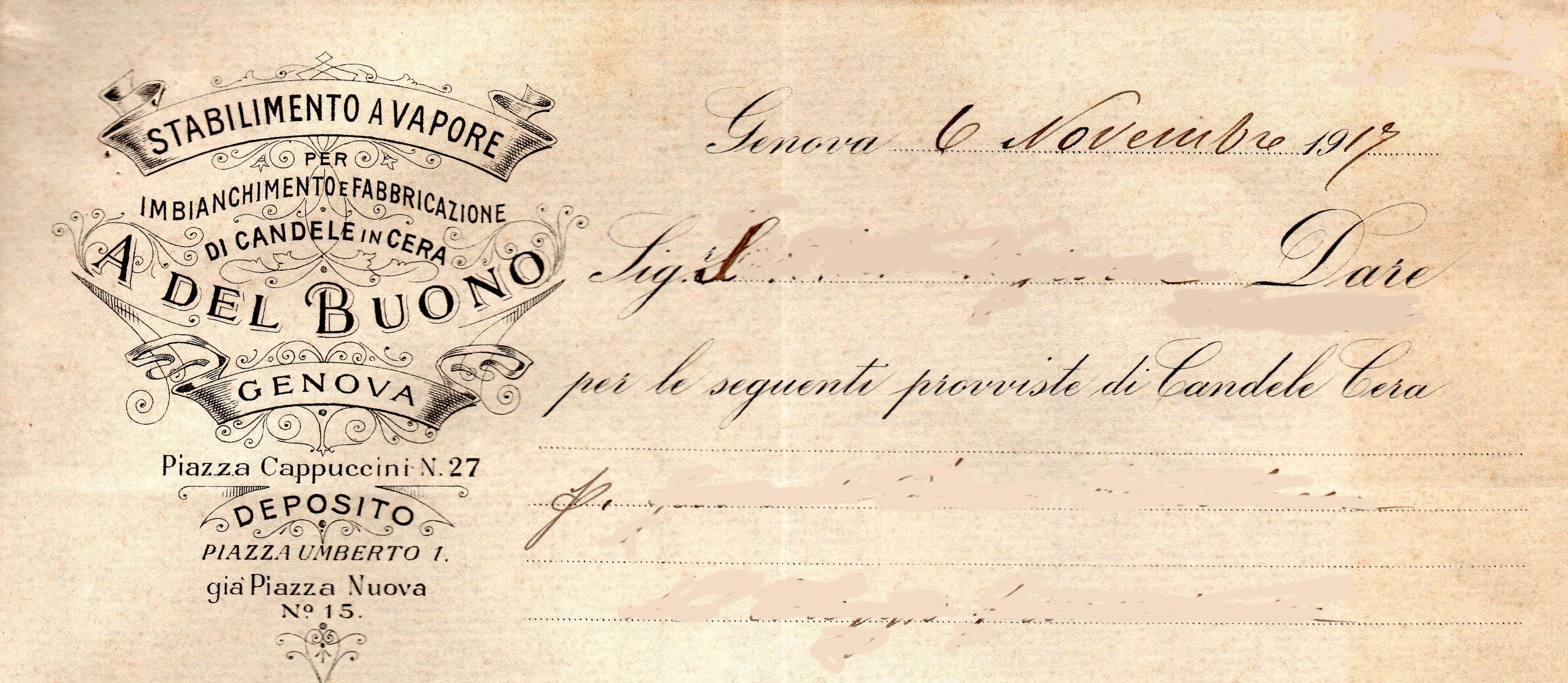 Stabilimento a vapore per Imbiancamento e fabbricazione di Candele in cera. Piazza Cappucini n°27 Deposito in Piazza Umberto I già Piazza Nuova.