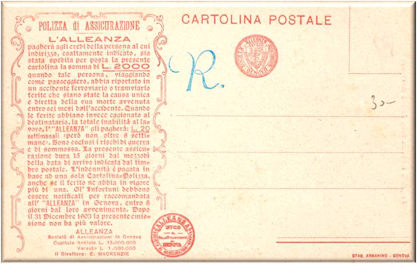 Cartolina polizza, interessante la sottoscrizione attraverso la spedizione della stessa.