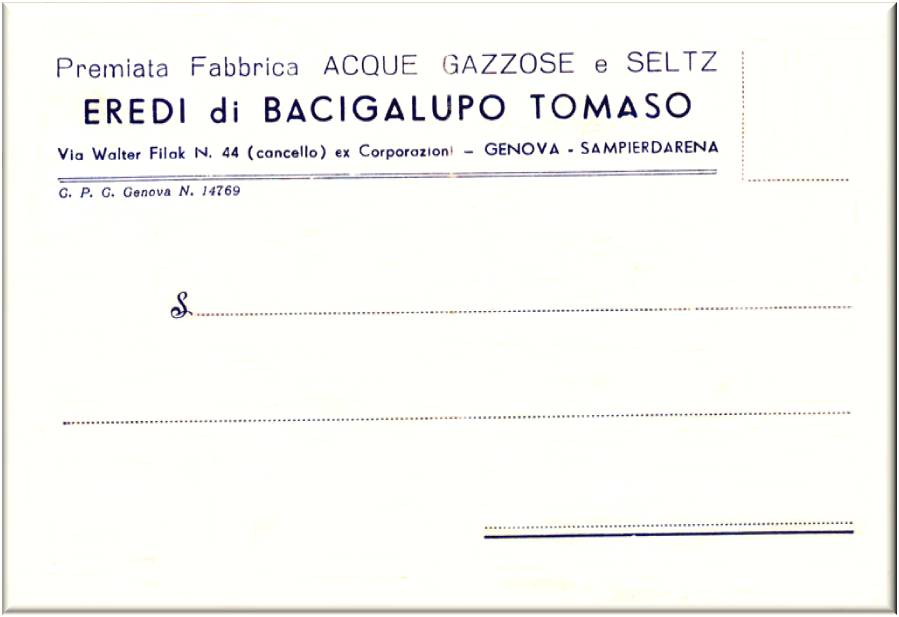Cartolina commerciale, della ditta Eredi di Bacigalupo Tomaso.