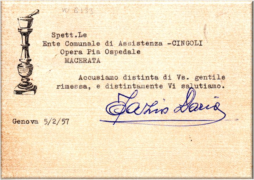 Cartolina viaggiata in data 5 febbraio 1957.