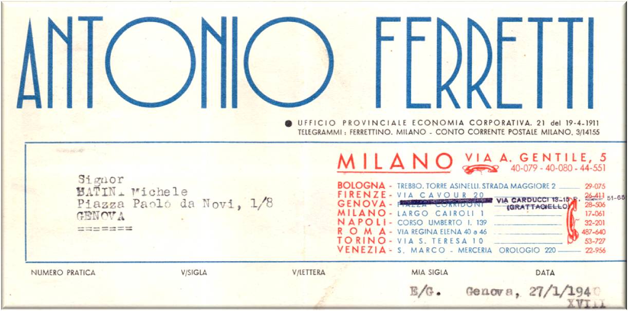 Fattura commerciale in data 27 gennaio 1940