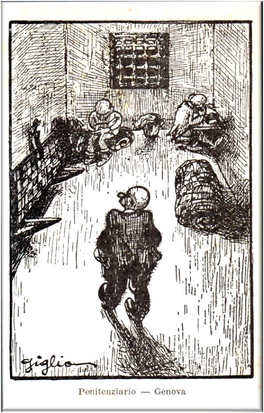 Nella cartolina è rappresentato il reparto del Pentenziario di Genova.
