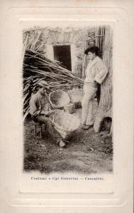 Cartolina nuova in cui sono rappresentati i Canestrai nella costruzione dei cesti.