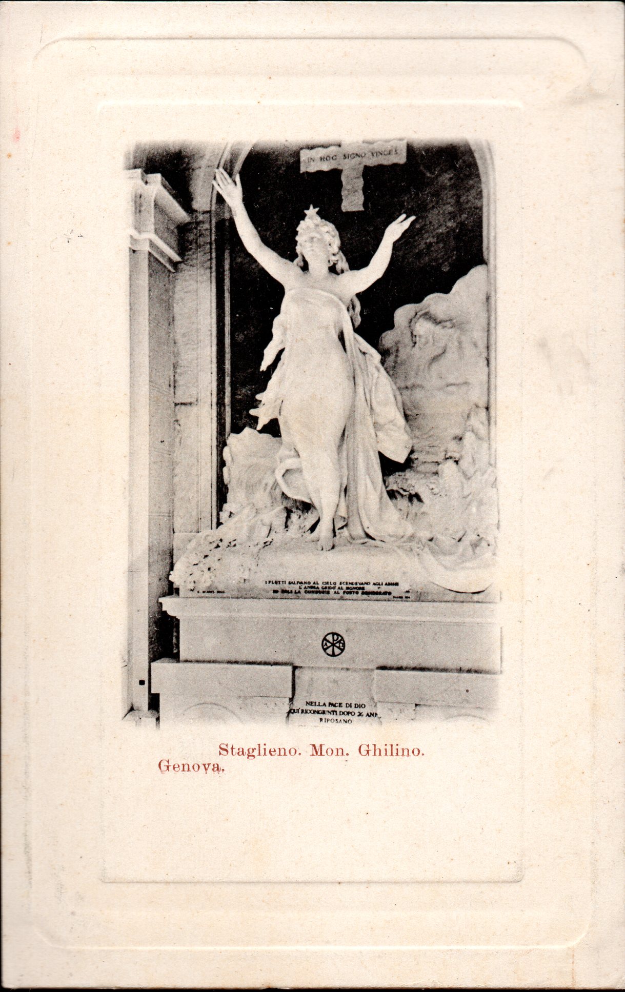 Cartolina riproducente il monumento Ghilino nel cimitero di Staglieno