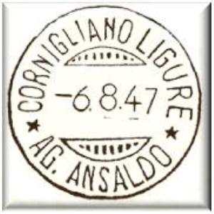 Cartolina commerciale affrancata con due valori da lire 4 della serie democratica, annullati col bollo "CORNIGLIANO LIGURE AG.ANSALDO" in data 6 agosto 1947.