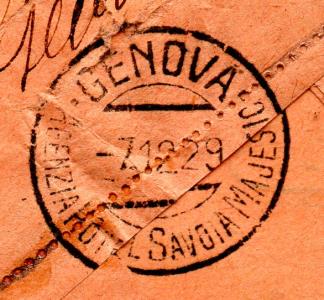 Albergo situato in genova Telegramma, annullato col bollo lineare "AGENZIA HOTEL SAVOIA MAJESTIC" in data 7 dicembre 1929, posto all'interno del telegramma. Alb.4 Scaf.7b P.4