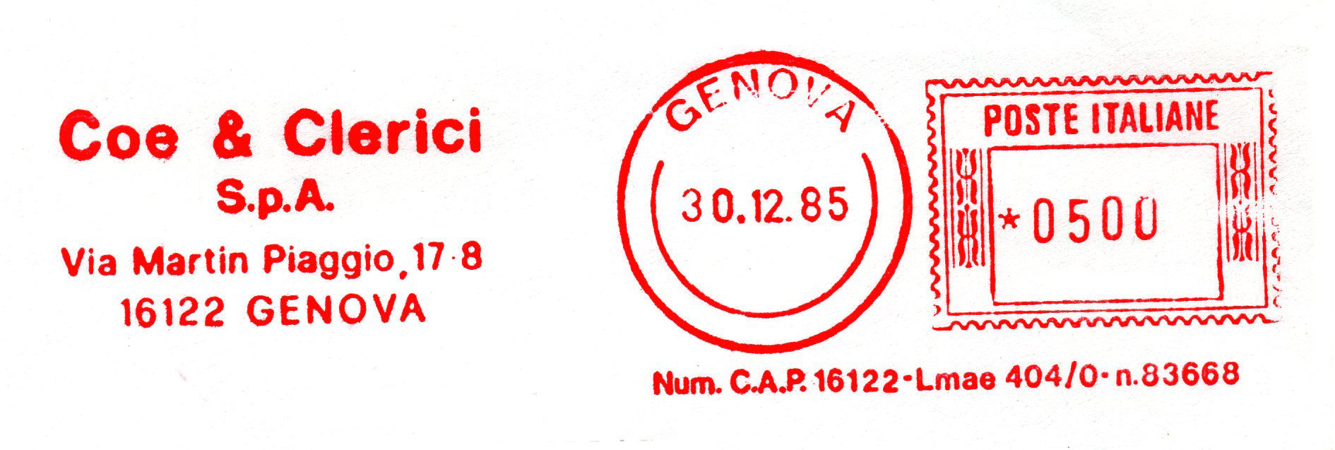 Filiale di Genova-Via San Benedetto, 14-Num.C.A.P. 16126