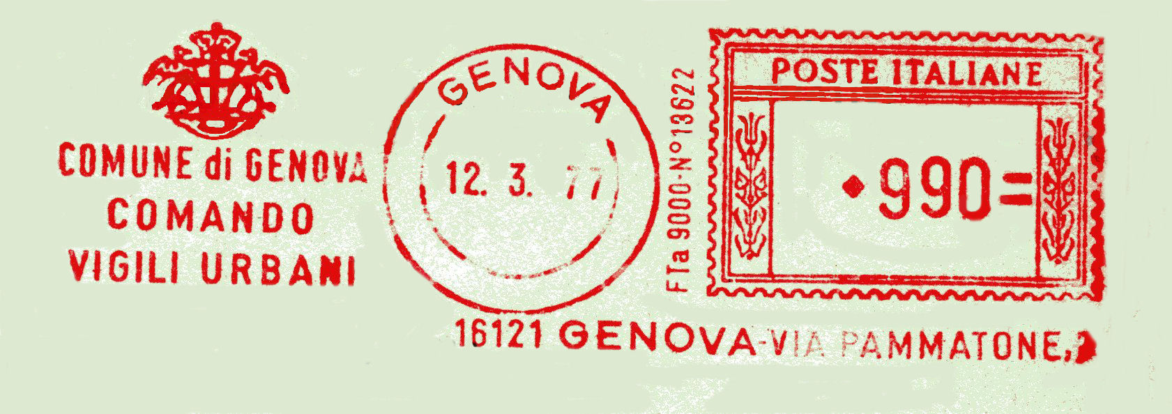 Affrancatura utilizzata in data 12 marzo 1977