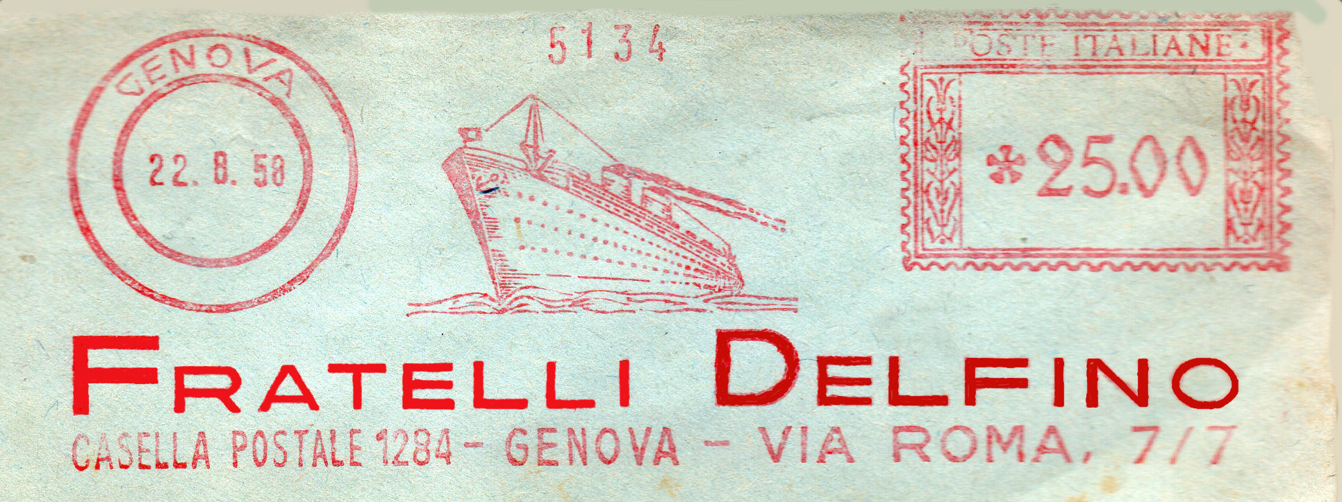La lettera con questa bella impronta ha viaggiato da Genova per la Francia in data 24 novembre 1931 con tariffa lire 1 e 25 cent.