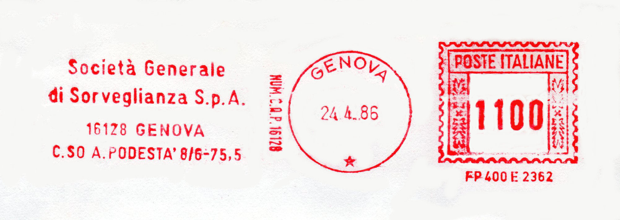 Affrancata con macchina tipo Lirma Mae 404 matr. 87444