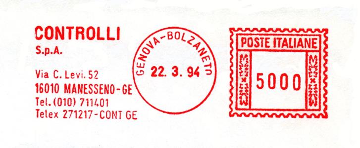 Affrancatura senza riferimento dell'utente, ma appartenente alla soc. RAPALLO GOLF CLUB.