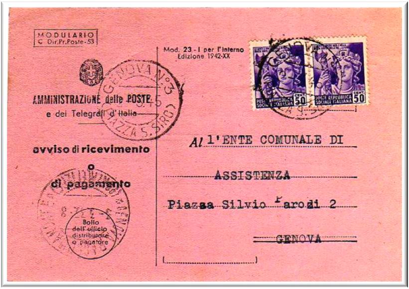 Annullati con il bollo GENOVA N°3 (PIAZZA S.SIRO) in data 2. 3. 45